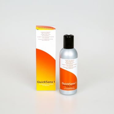 QuickSana 1 reinigt, kühlt und beruhigt irritierte und überstrapazierte Haut. Die kinesiologisch entwickelte Rezeptur ist auf die Bedürfnisse der Haut abgestimmt. Pflanzenextrakte, Mineralstoffe und bioenergetische Schwingungen schaffen ein optimales Umgebungsmilieu im irritierten Bereich und unterstützen den Regenerationsprozess der oberflächlichen und tieferen Hautschichten.