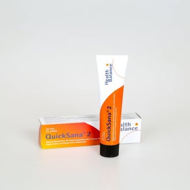 QuickSana 2 pflegt und schützt irritierte und überstrapazierte Haut. Die kinesiologisch entwickelte Rezeptur ist auf die Bedürfnisse der Haut abgestimmt. Pflanzenextrakte, Mineralstoffe und bioenergetische Schwingungen schaffen ein optimales Umgebungsmilieu im irritierten Bereich, fördern den Regenerationsprozess der oberflächlichen und tieferen Hautschichten.